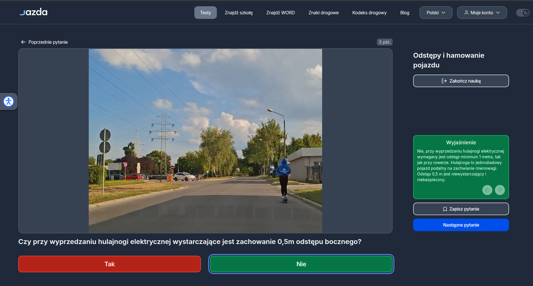 A jeśli na egzaminie trafisz na pytanie o hulajnogę i odstęp, przeczytaj uważnie, o który manewr chodzi. To może być różnica między zdanym a niezdanym testem.